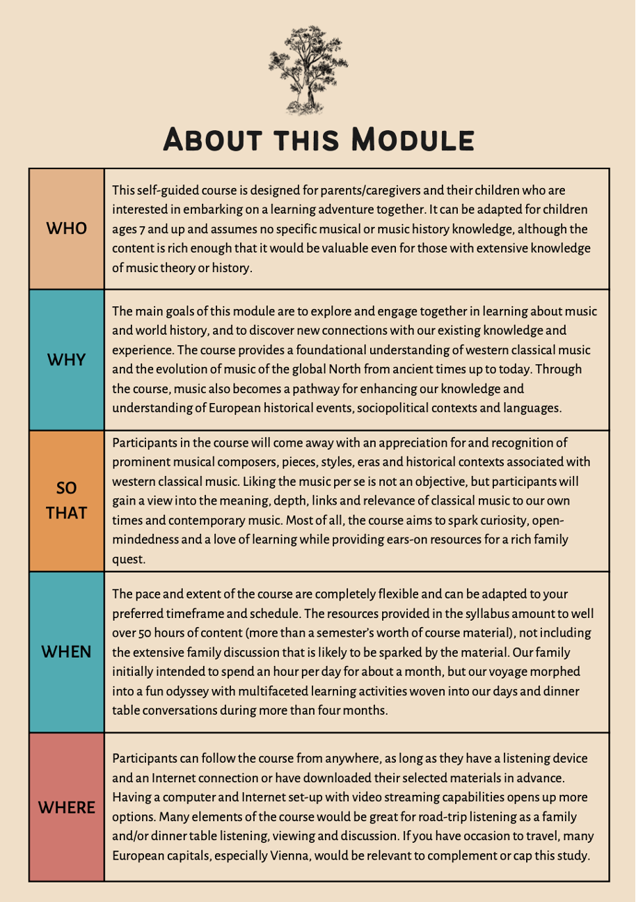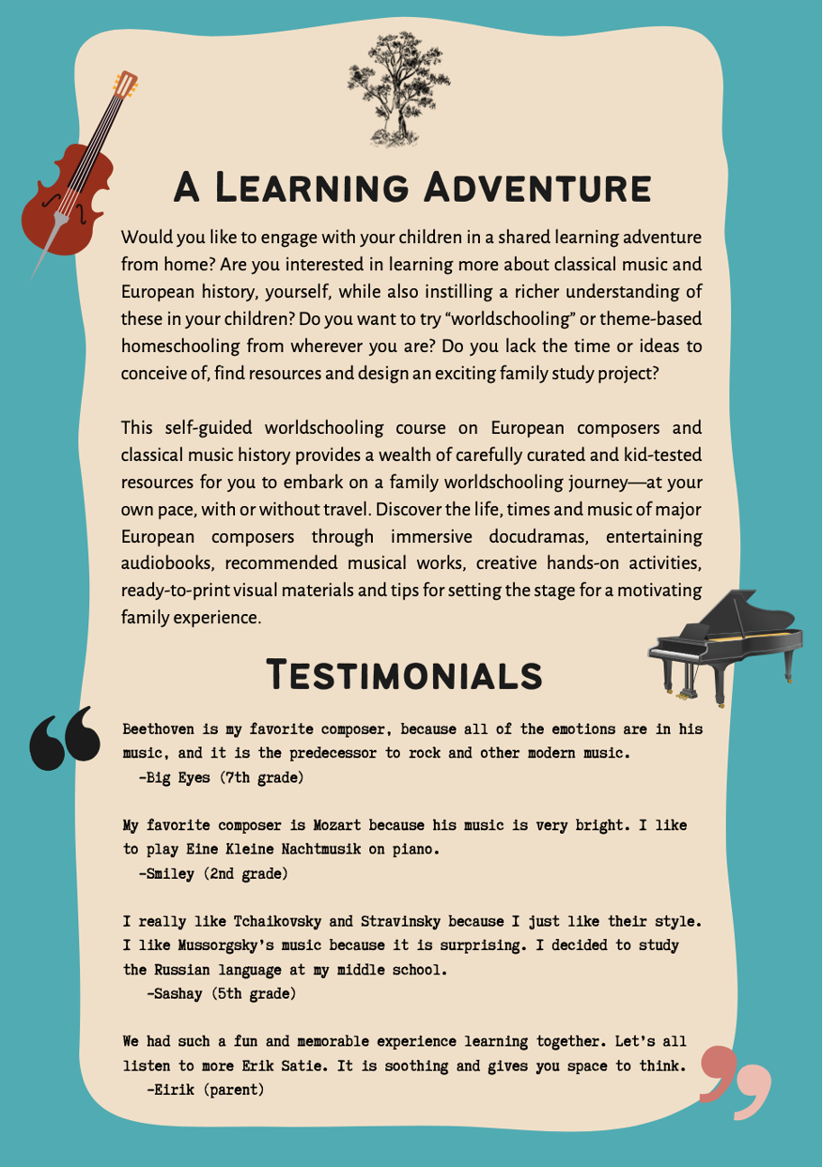 Would you like to engage with your children in a shared learning adventure from home? Do you lack the time to conceive of, find resources for and design an exciting family study project? Learn below about this self-guided Classical Music History module for family learning. Click the button to request the full module for free.
