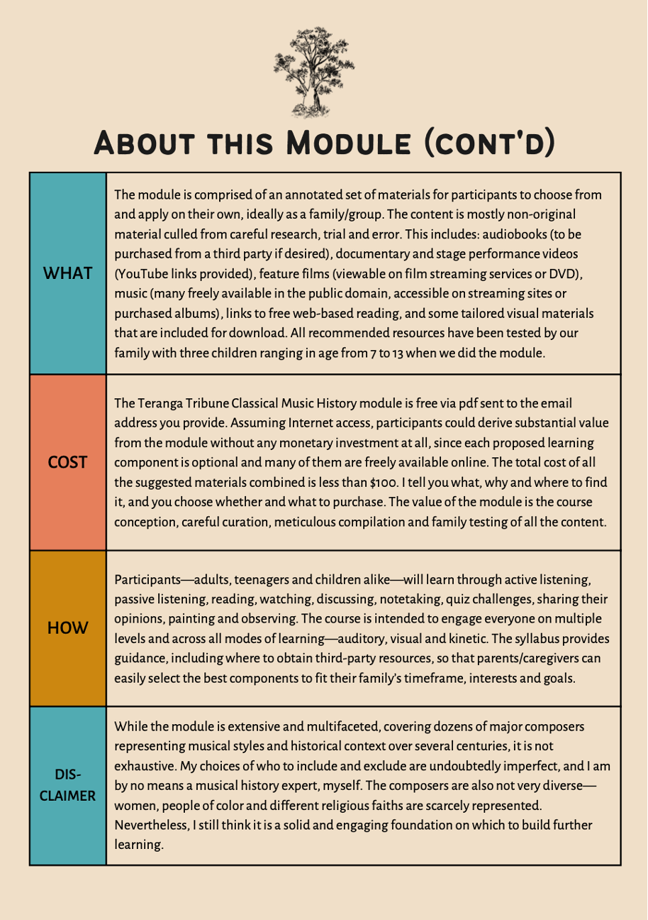 I would love to share this module with you and your family! Please provide your email address below and note "Classical Music History Module" in the message so I can send you the package of materials (in pdf and Word).